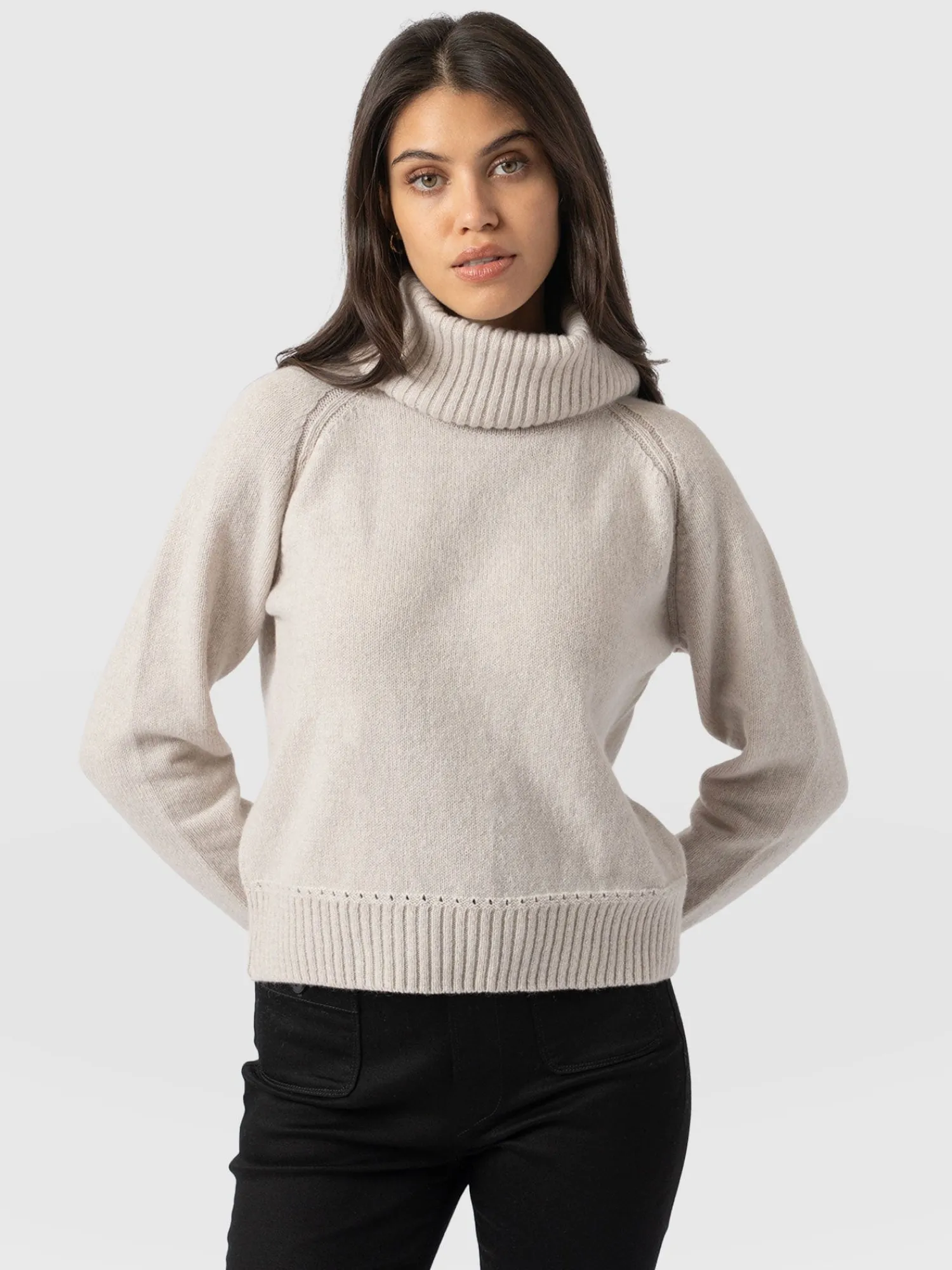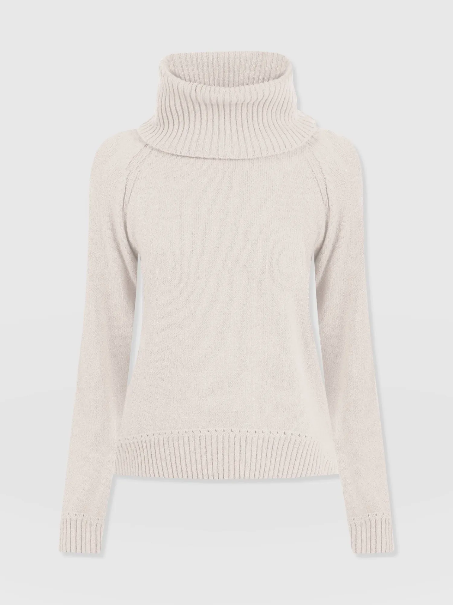 There are many reasons to love our Cambridge Cashmere Sweater in cream: the sumptuously soft cashmere, the relaxed raglan shape, and most importantly, the detachable snood. This practical style solution allows you to switch between styles and choose either a classic crew neckline or a warming rolled neckline, depending on the occasion. Each mid-weight knit is masterfully stitched by hand in our studios in Europe, where artisans guarantee the highest quality that lasts for seasons to come.
