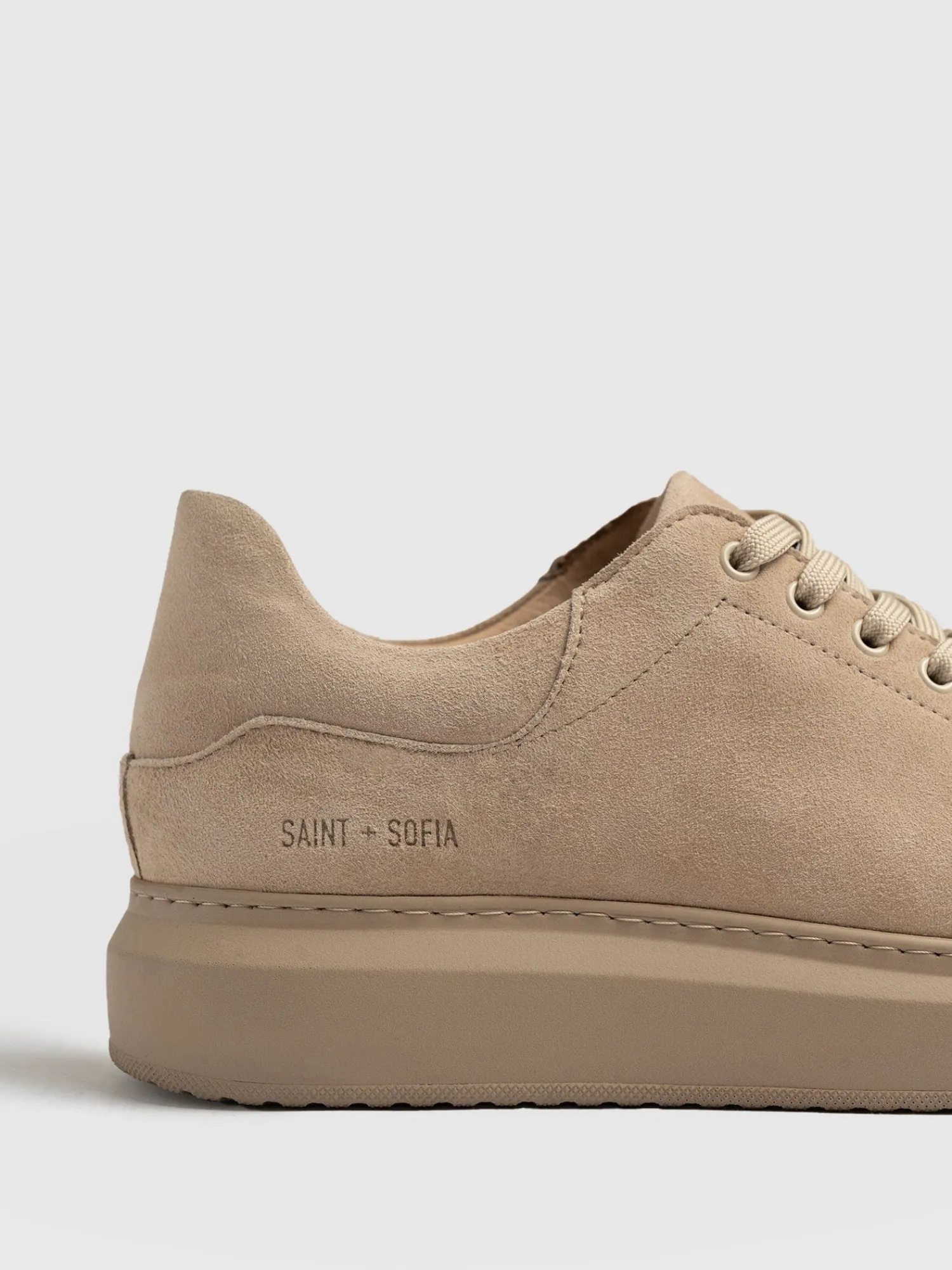 The Hampstead Sneaker in Camel Suede is a classic platform sneaker with a branded Saint and Sofia plaque at the lace. Ma…