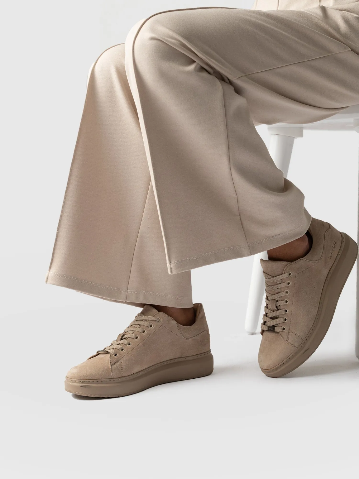 The Hampstead Sneaker in Camel Suede is a classic platform sneaker with a branded Saint and Sofia plaque at the lace. Made with the softest natural leather and a comfortable wide fit, it’s perfect for daily wear. Our sneakers are designed in London and handmade in Portugal in a family-owned studio that has been making shoes for over seventy years, with each batch arriving in small quantities to ensure the highest quality. Pair yours with a knit and leggings, or opt for wide-leg jeans. Limited number available.