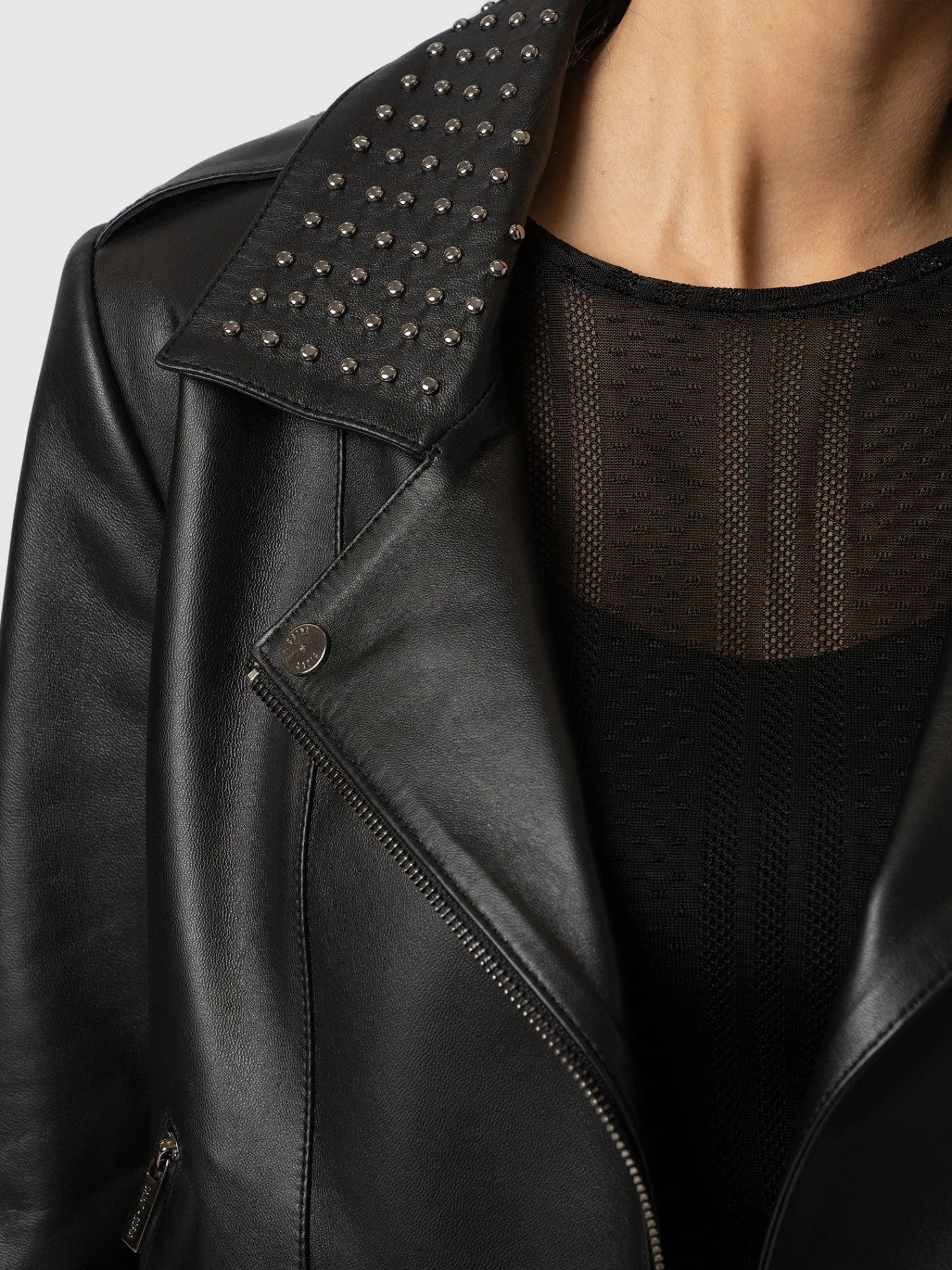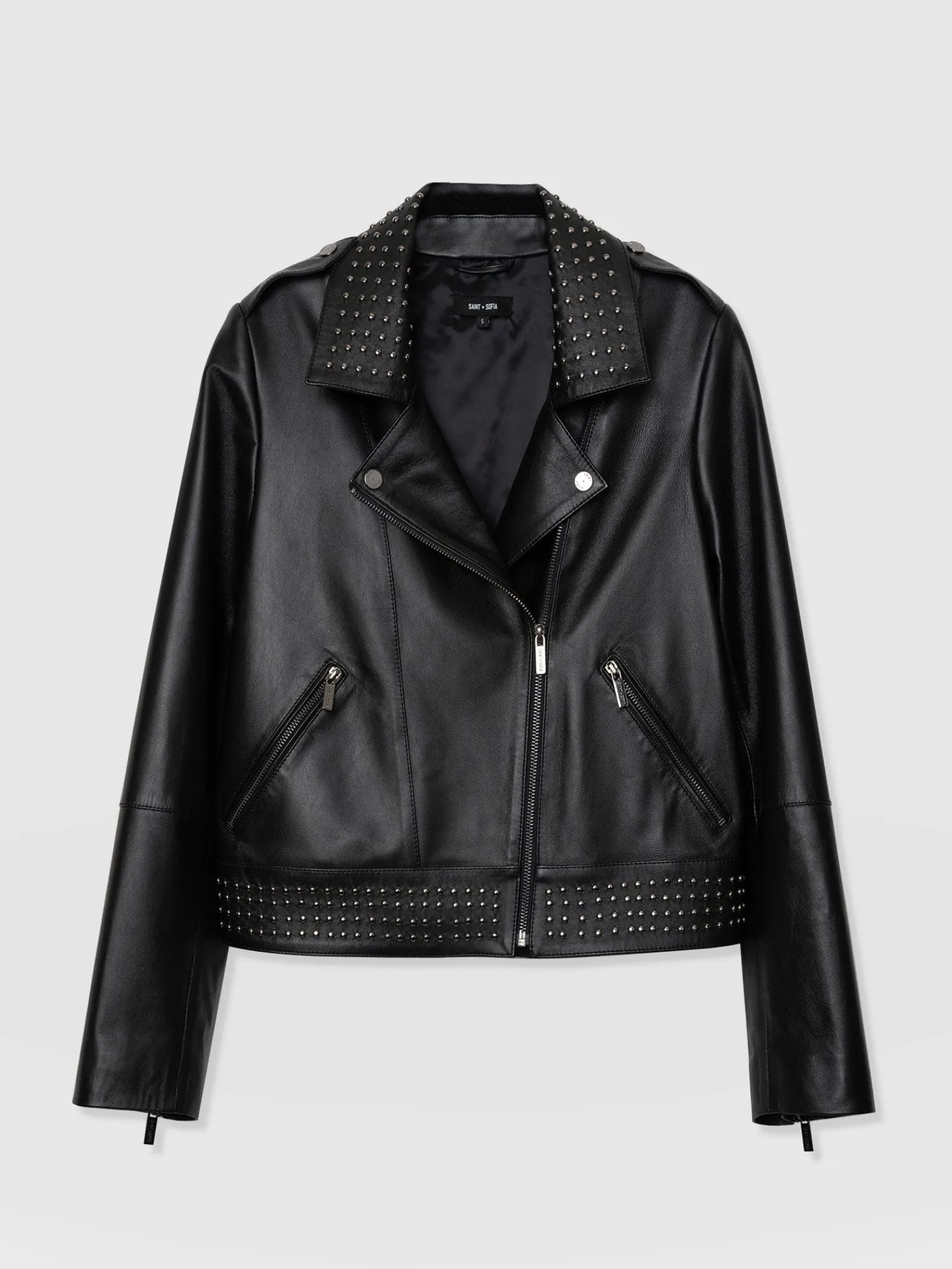 Fashion Saint and Sofia Bonham Studded Biker Jacket – Black