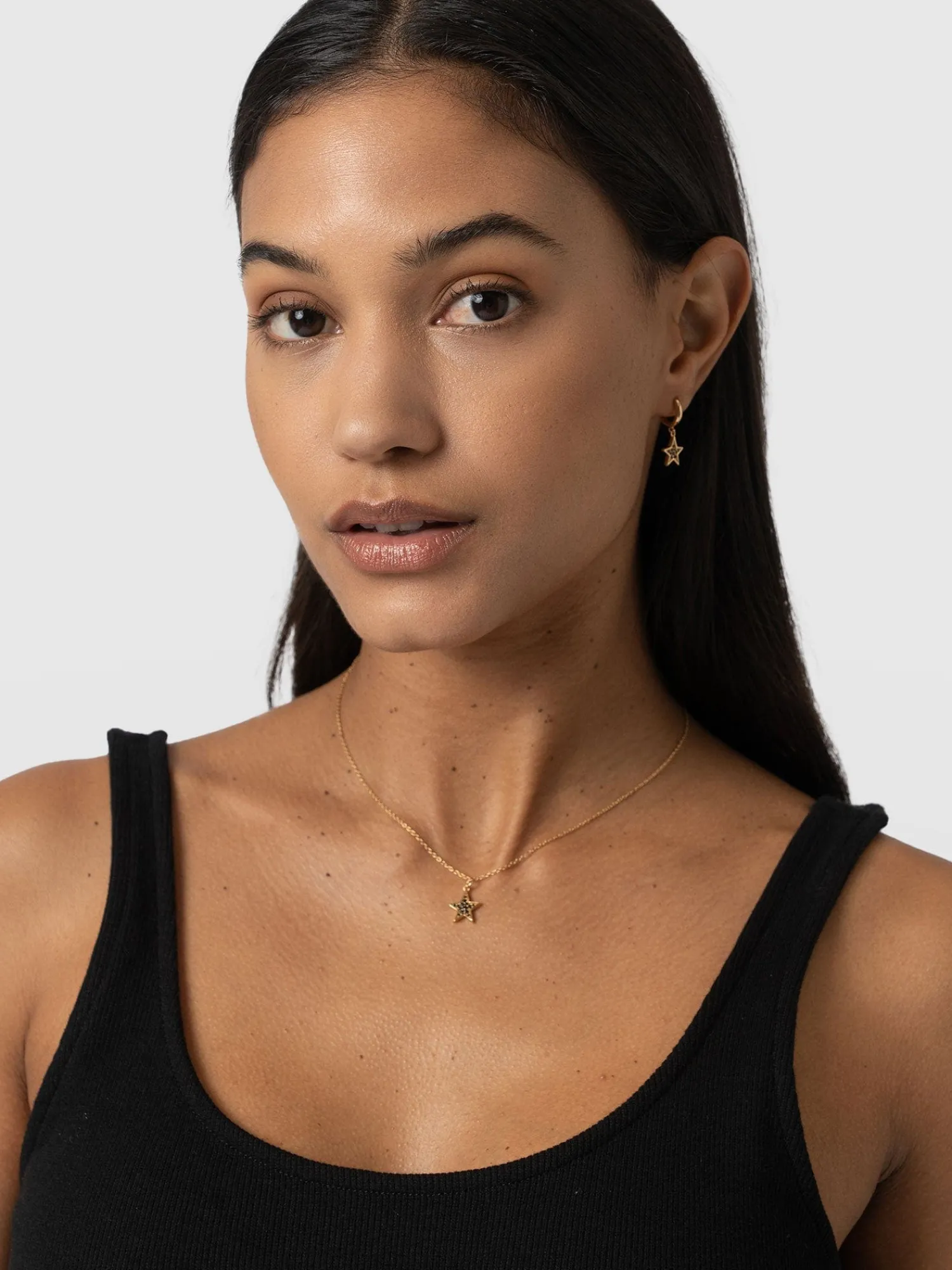 An elegant Astral Star Necklace in gold that can become a chic addition to your jewelry collection. Perfect for styling for work, weekends or as a gift for loved ones. This necklace features an elegant star design, blending timeless gold style with a touch of sparkle. Each necklace is handmade to guarantee precision and a quality that will last for years to come.