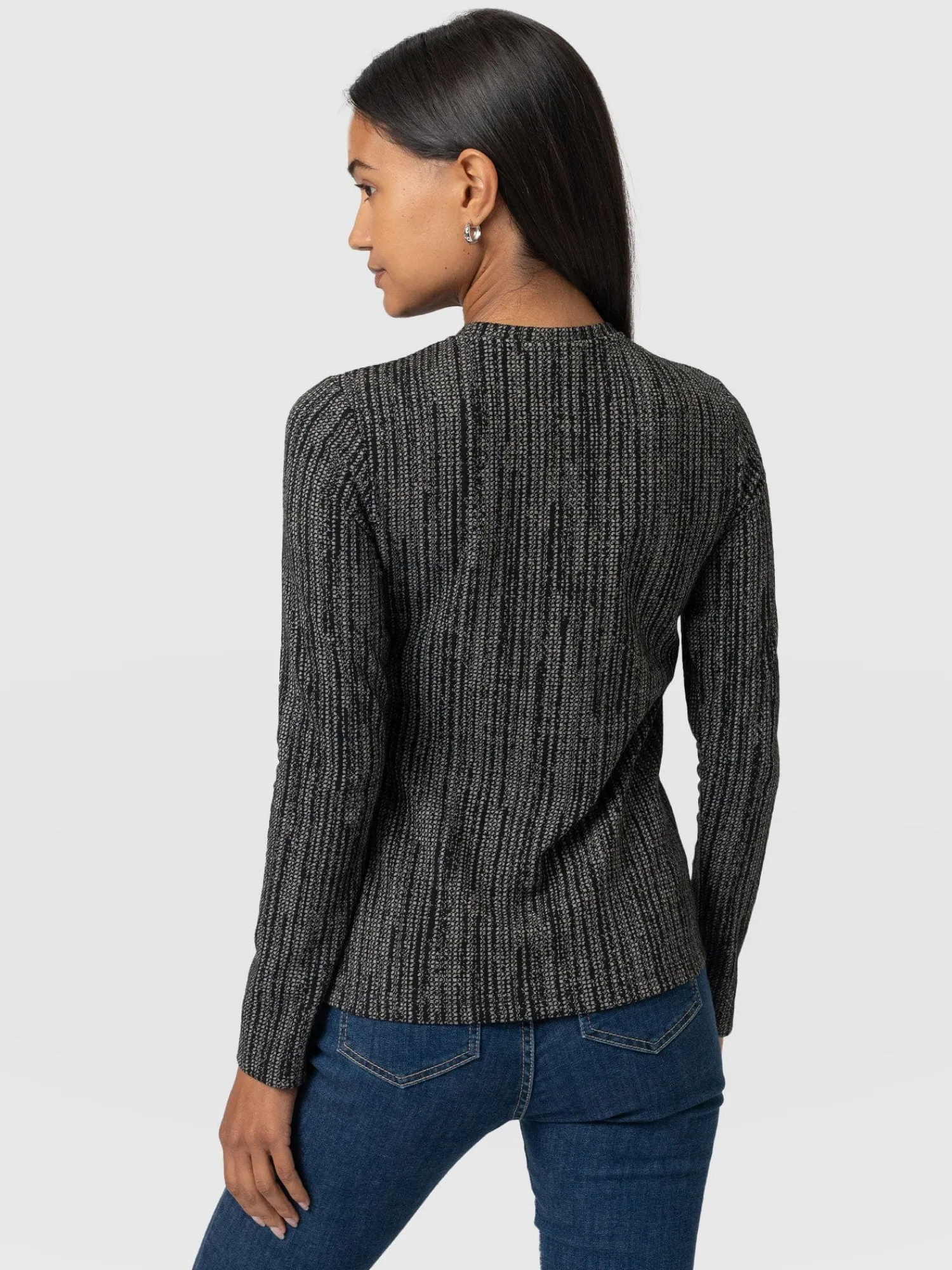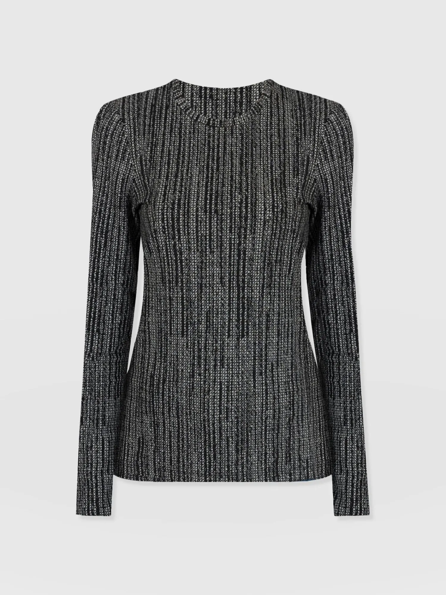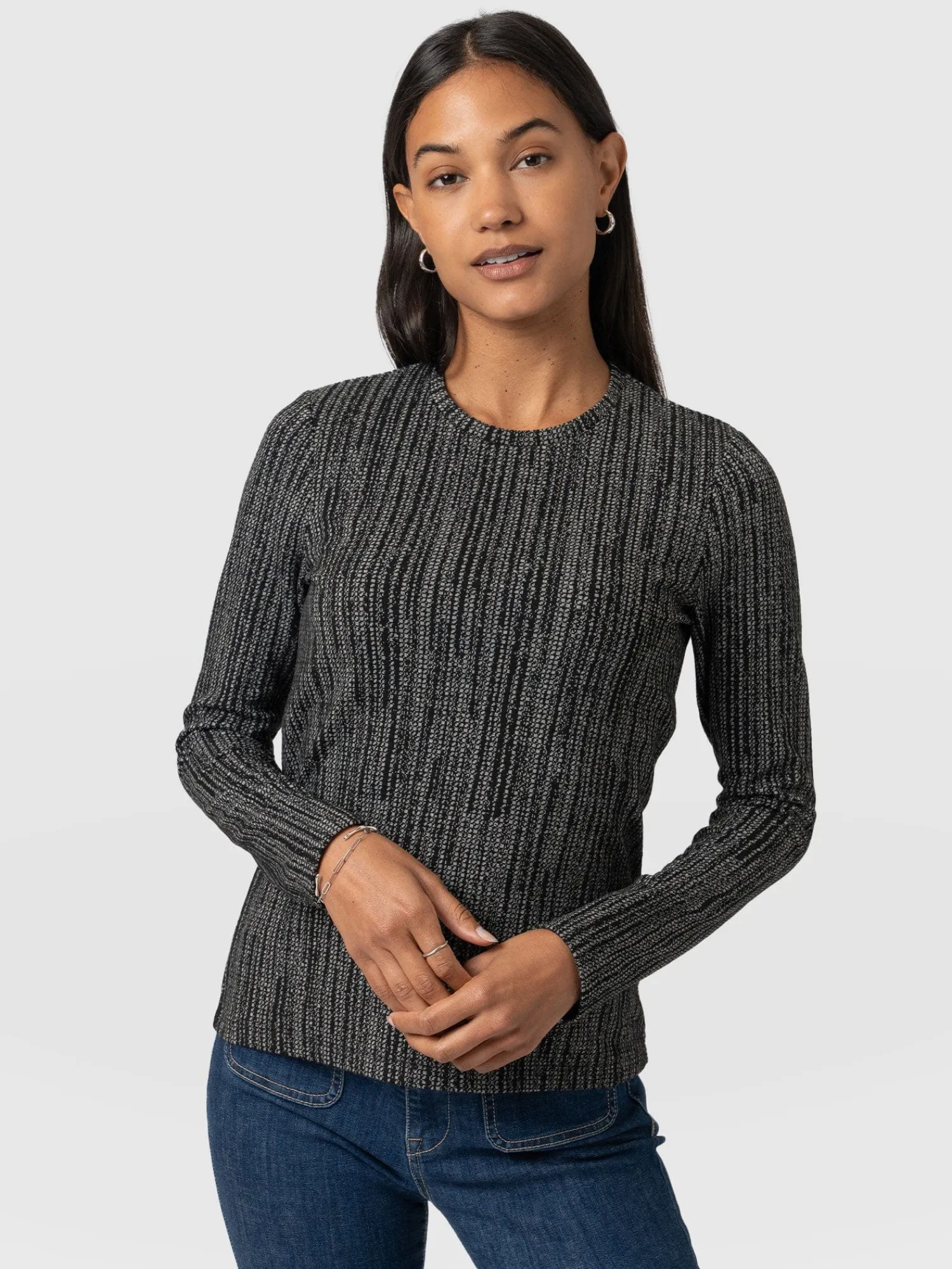 Bring interest to your daytime dressing with the Glen Crew Neck tee. Handmade with our grey and black pixel jersey, it helps to elegantly elevate any daytime outfit. And shaped to a slim fit with long, bracelet-length sleeves, it works to flatter your frame. Pair with your favourite jeans for an everyday look or with the matching Keller Pants for a cosy loungewear vibe.