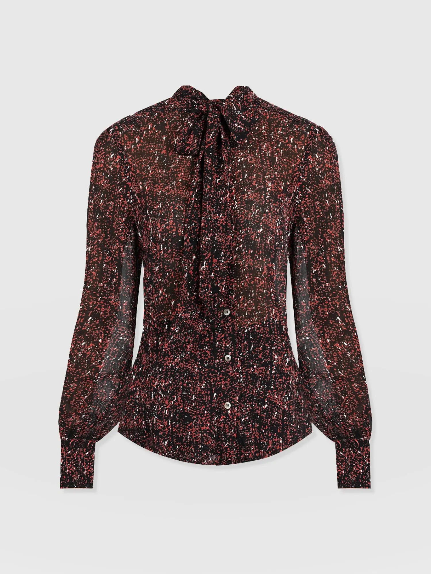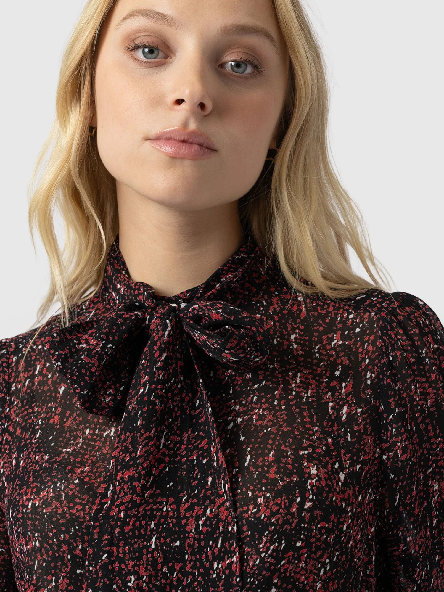 New Saint and Sofia Paxton Pussybow Blouse – Red Ditsy Leopard