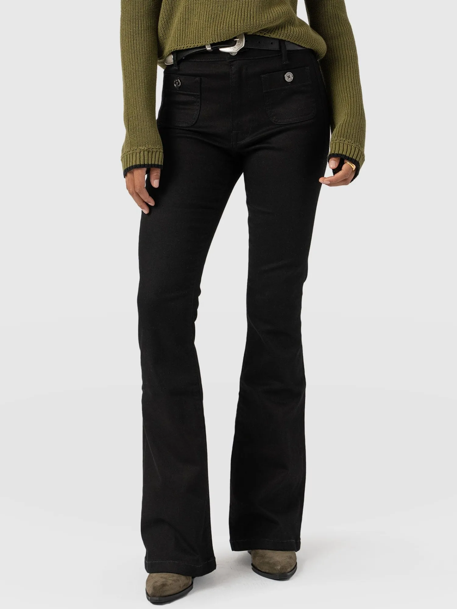 Online Saint and Sofia Bowie Stretch Flare Jeans – Jet Black