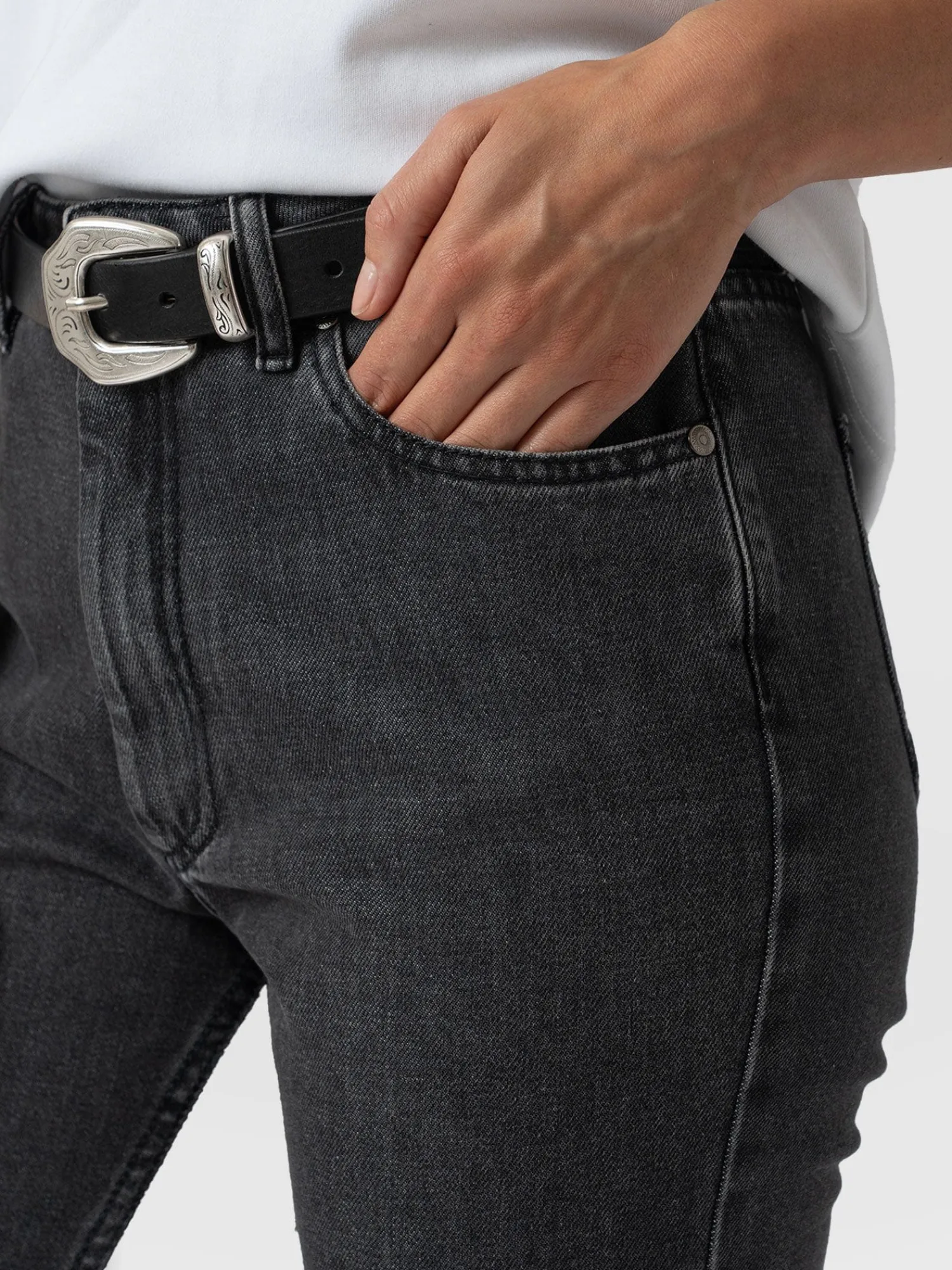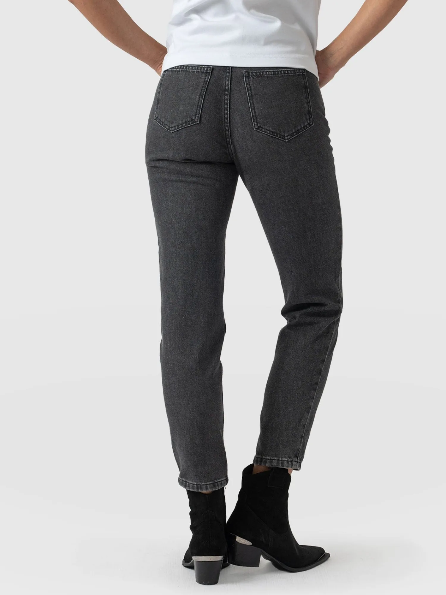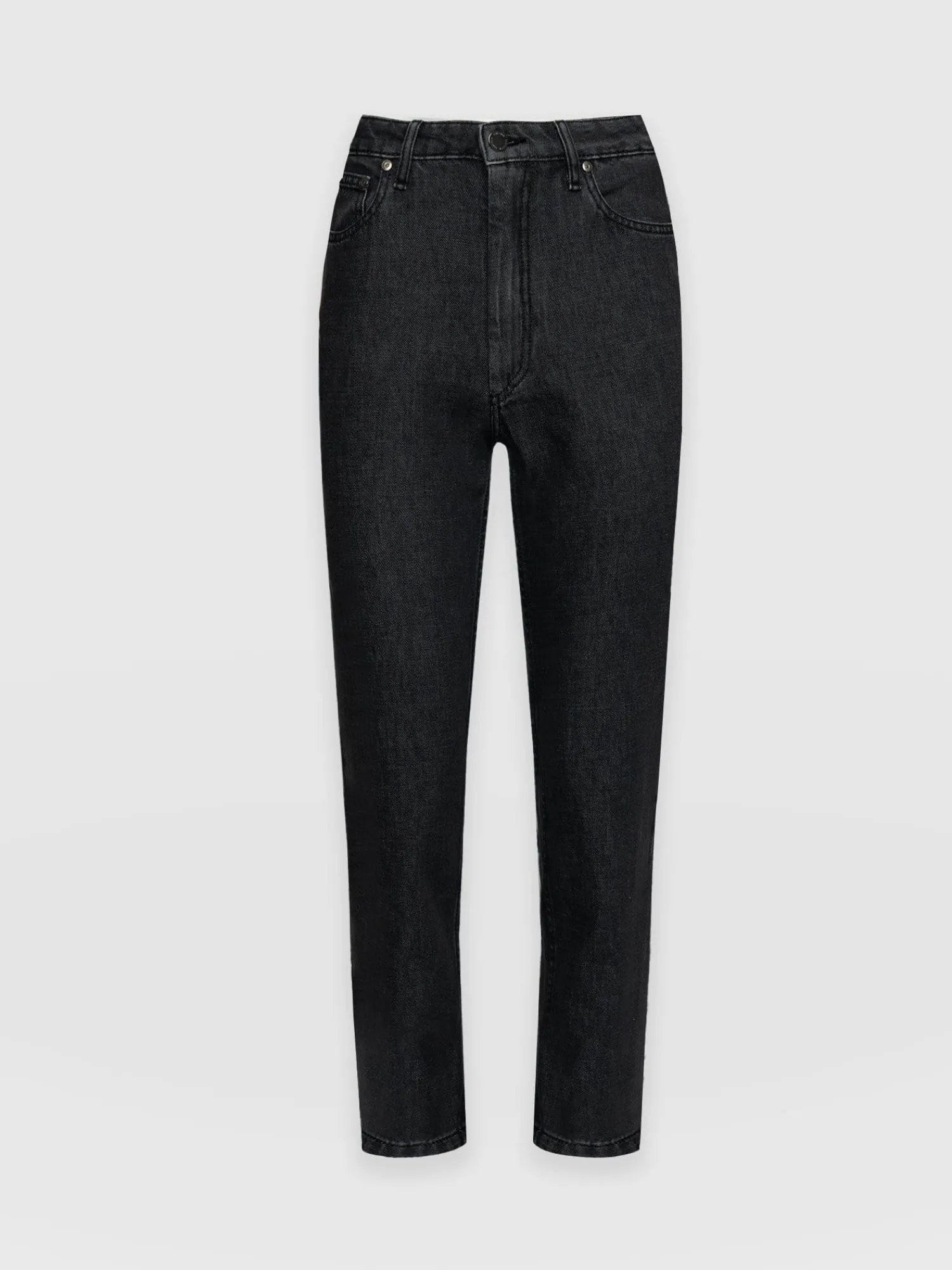 A classic, slim mom jean in black, handmade with the softest recycled cotton blend for the perfect fit and feel. They’re high-waisted with a straight leg and specially designed for a flattering fit. We designed these in our London studios and hand-finished them in Europe. Wear them with boots, sneakers or heels for a smart casual look.