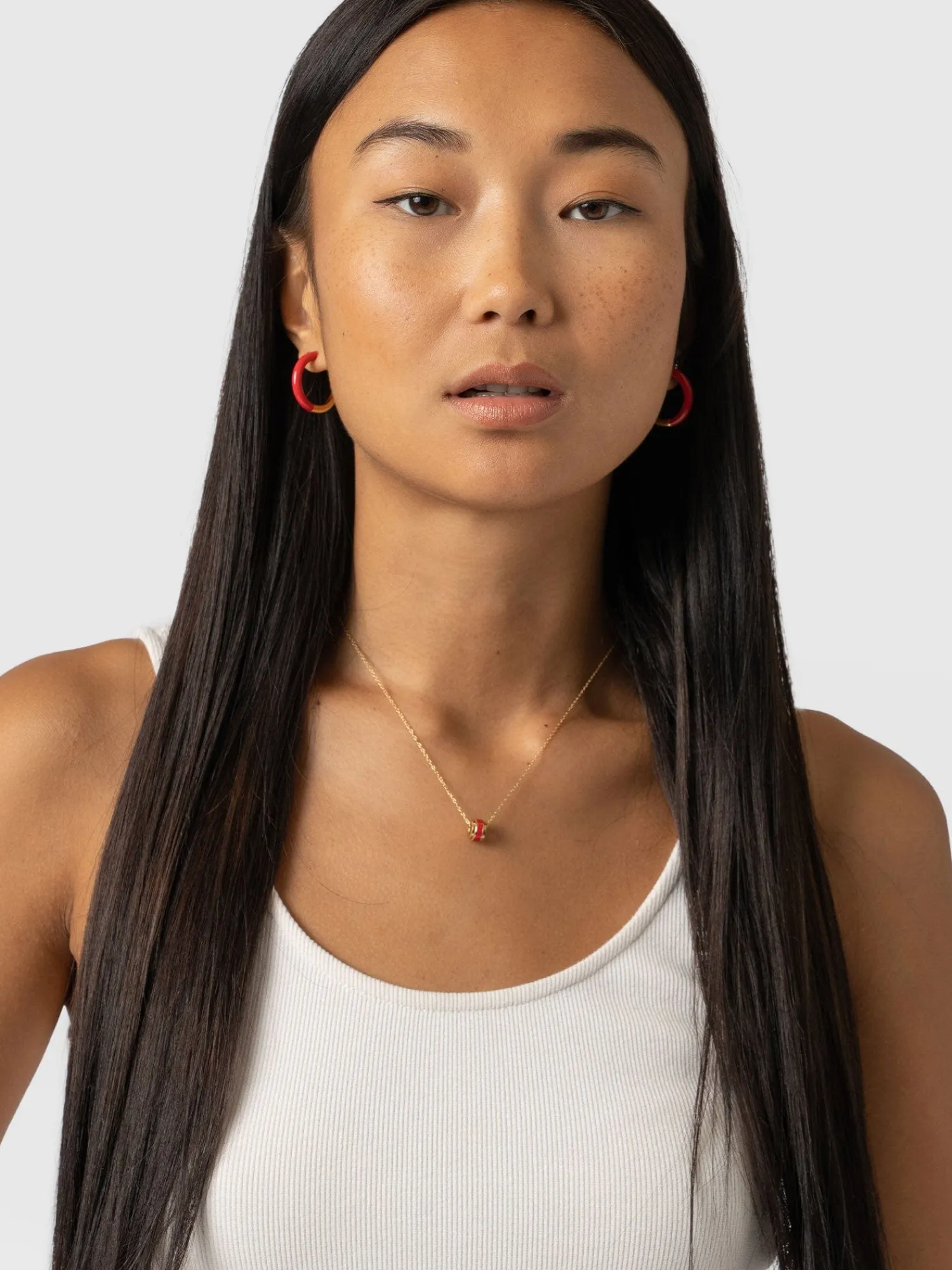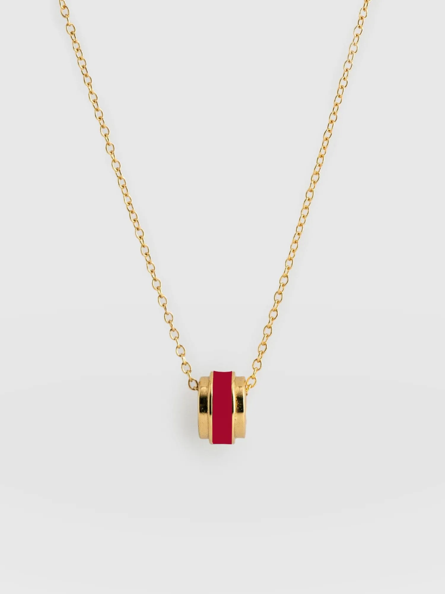 The Enamel Striped Charm Necklace in gold and red is an elegant accessory destined to become your new favourite addition…
